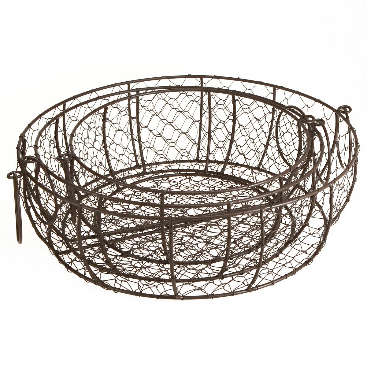 Wire Basket Bowl with Handle Brown Ø35/30/25cm Set of 3