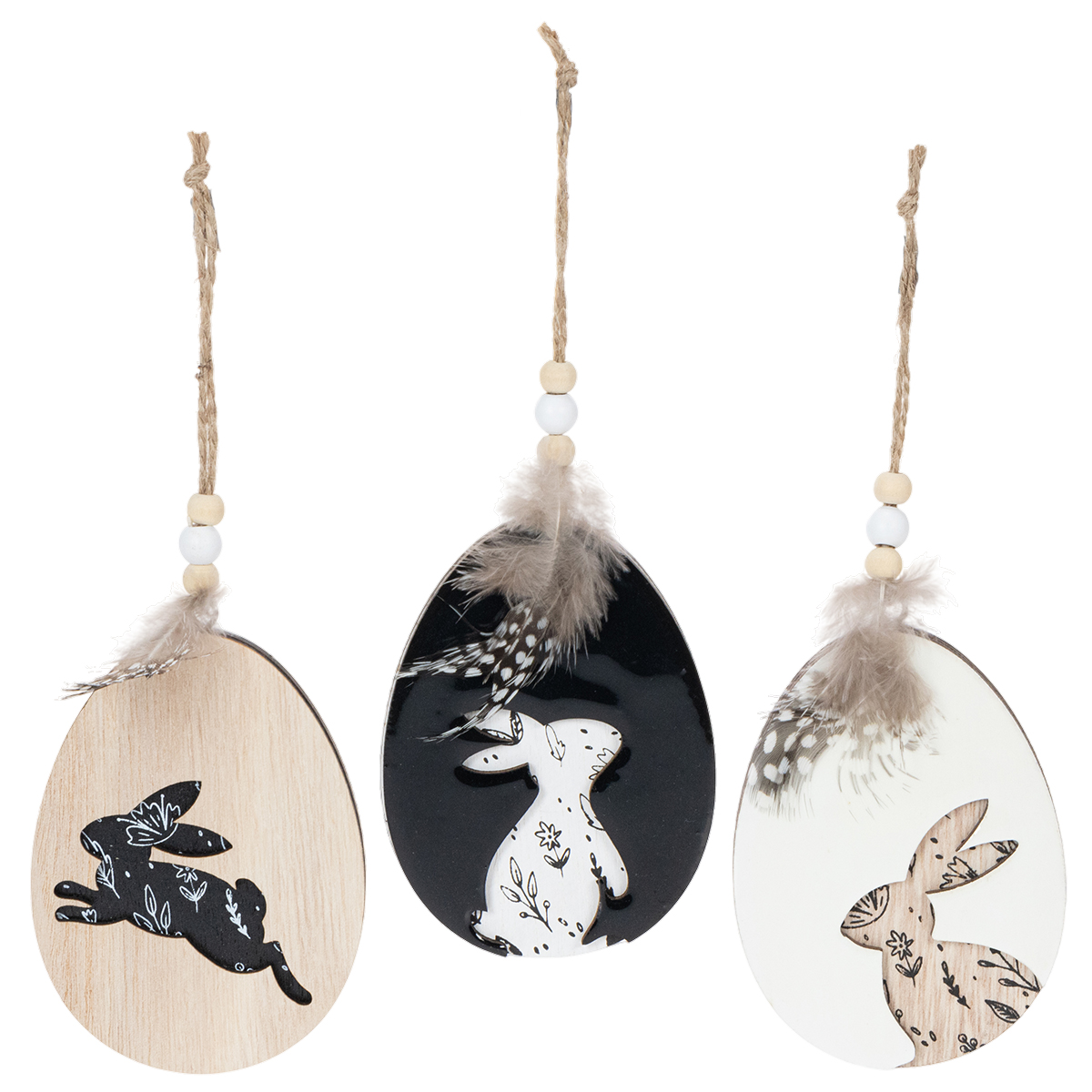Wooden Easter Eggs for Hanging, White and Black, 10cm, 6 Pieces