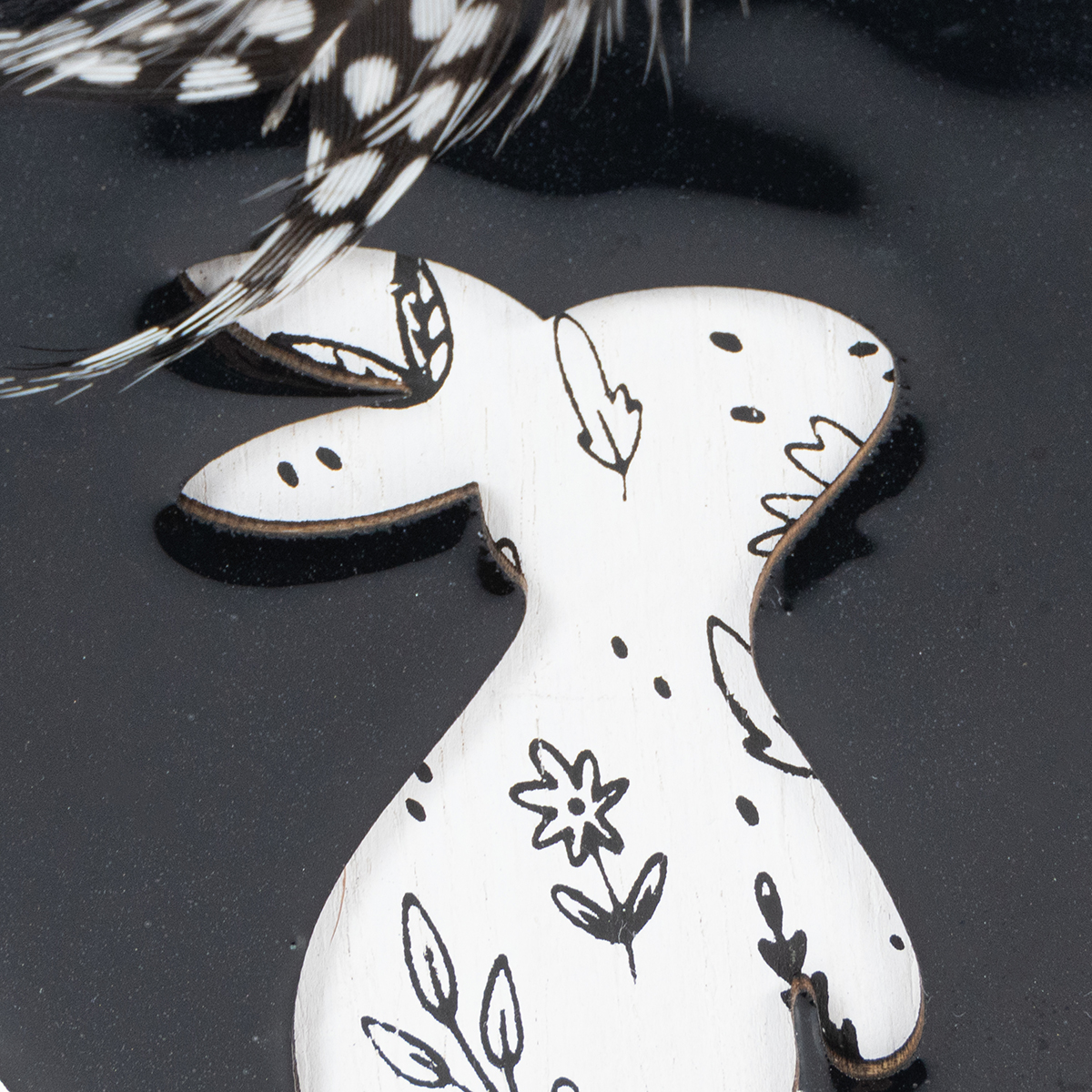 Rabbit in the egg – the trend is a real eye-catcher! Small silhouettes as bunnies on a picture of flowers, shaped like an Easter egg - this is how this Easter decoration made of wood presents itself. The high-gloss surface and the guinea fowl feather give the nostalgic, beautiful decorative hangers an additional elegant touch.