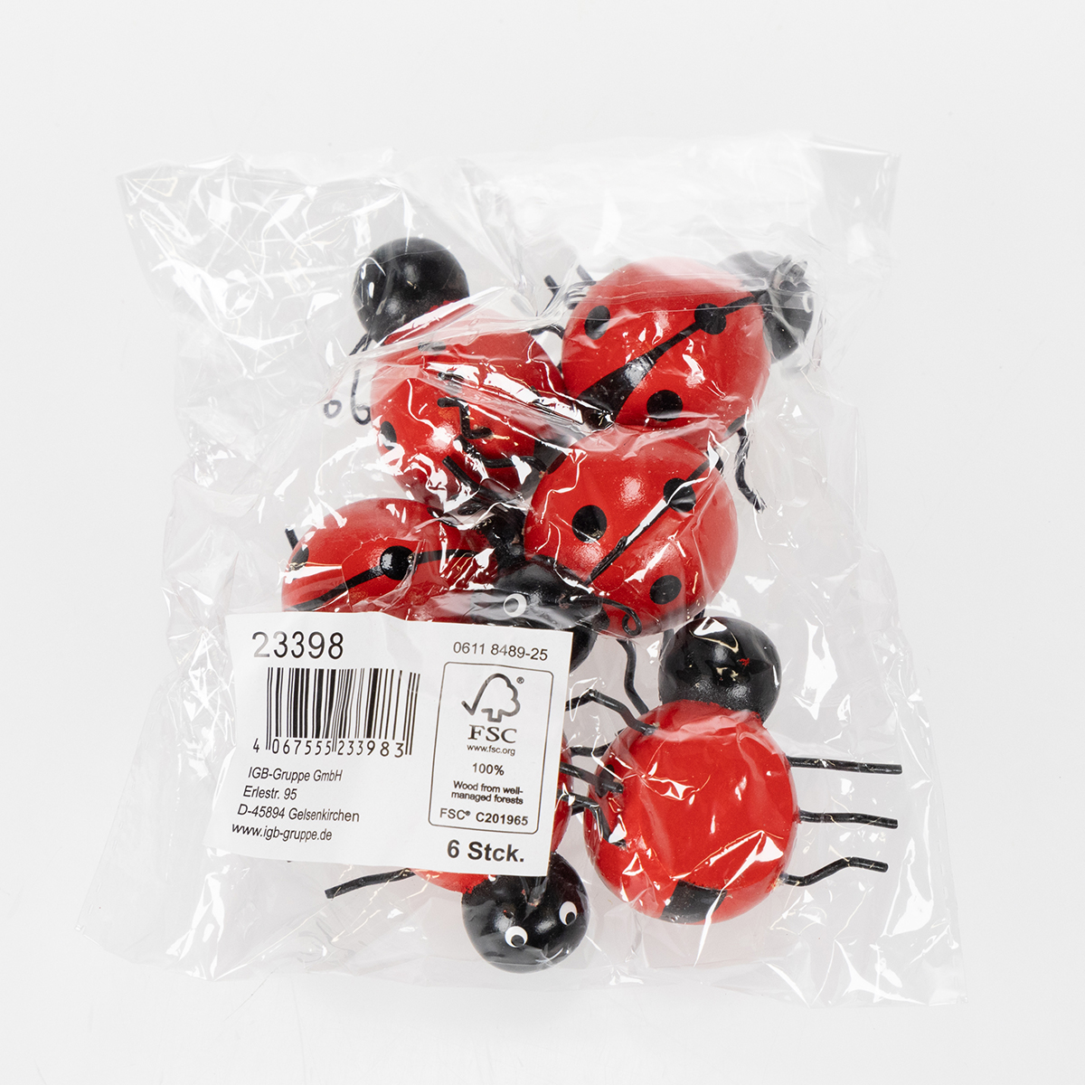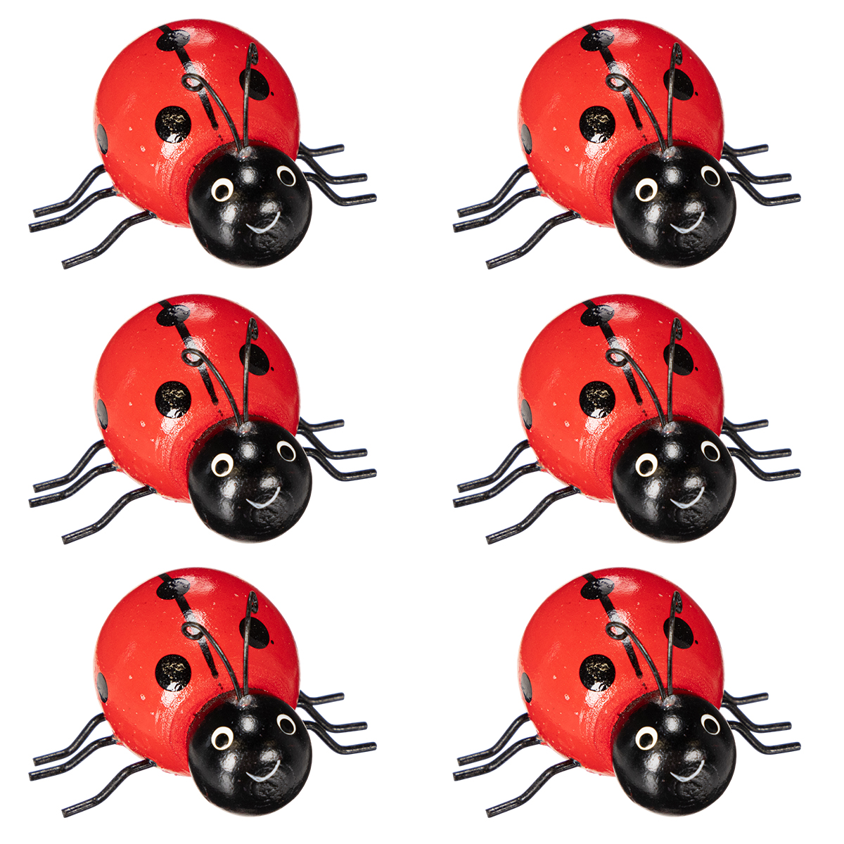 Wooden ladybugs/lucky bugs as cute decorations for the home, 5cm, 6 pieces