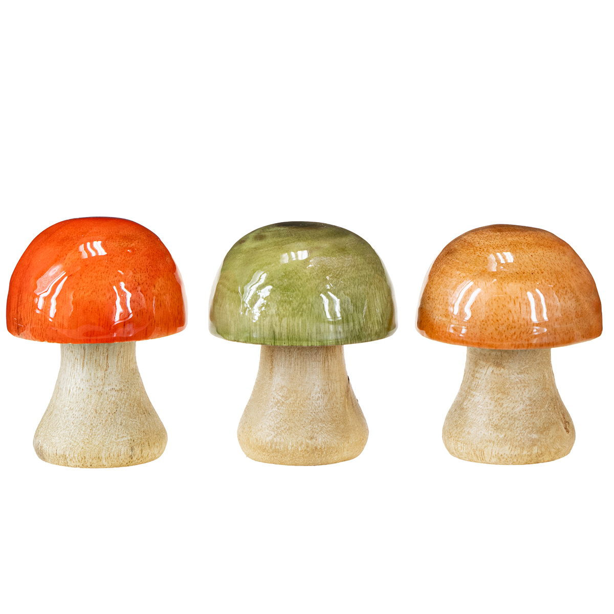 Have you ever wondered how to give your living room or dining table that wonderful autumnal charm? Sometimes a small, lovingly selected decoration is enough to conjure up an atmosphere full of warmth and comfort. Our wooden mushrooms in green, red, and orange bring just that: pure autumn feeling! With their handy size of 6.5 cm and their robust wooden construction, the mushrooms not only fit perfectly into any arrangement but also exude a touch of rustic country-house style. Whether as part of your table decoration, on the windowsill, or in an autumnal wreath – these wooden figures are so versatile that they are sure to become the highlight of your decor.