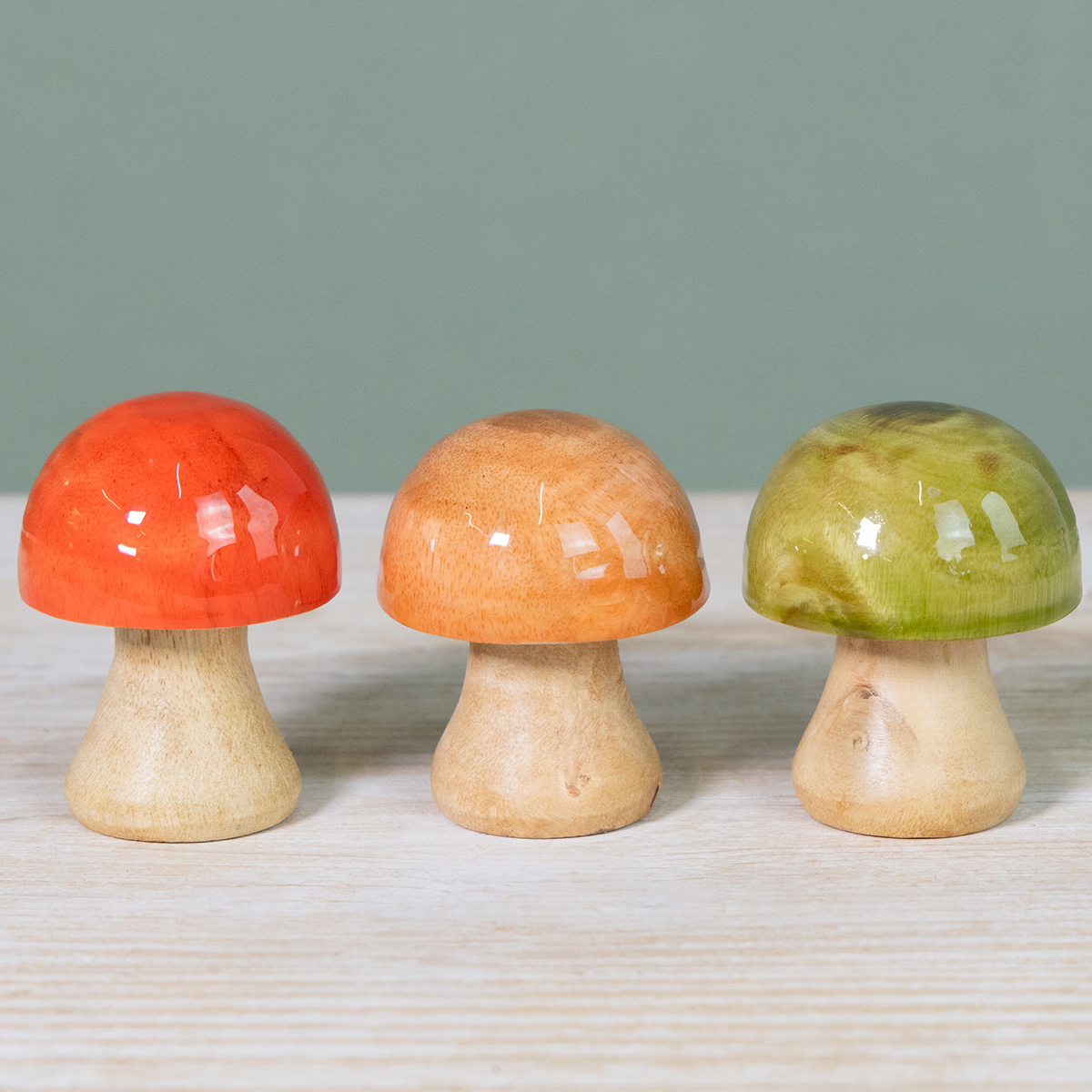 Have you ever wondered how to give your living room or dining table that wonderful autumnal charm? Sometimes a small, lovingly selected decoration is enough to conjure up an atmosphere full of warmth and comfort. Our wooden mushrooms in green, red, and orange bring just that: pure autumn feeling! With their handy size of 6.5 cm and their robust wooden construction, the mushrooms not only fit perfectly into any arrangement but also exude a touch of rustic country-house style. Whether as part of your table decoration, on the windowsill, or in an autumnal wreath – these wooden figures are so versatile that they are sure to become the highlight of your decor.