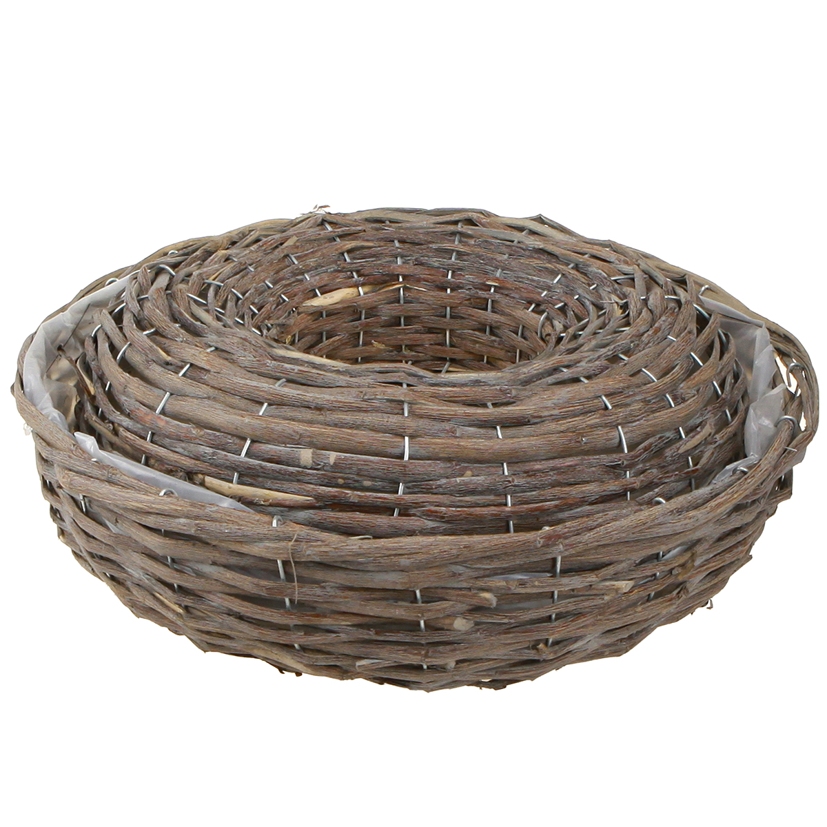 Wooden rattan plant rings, natural grey, Ø40/45cm, set of 2.