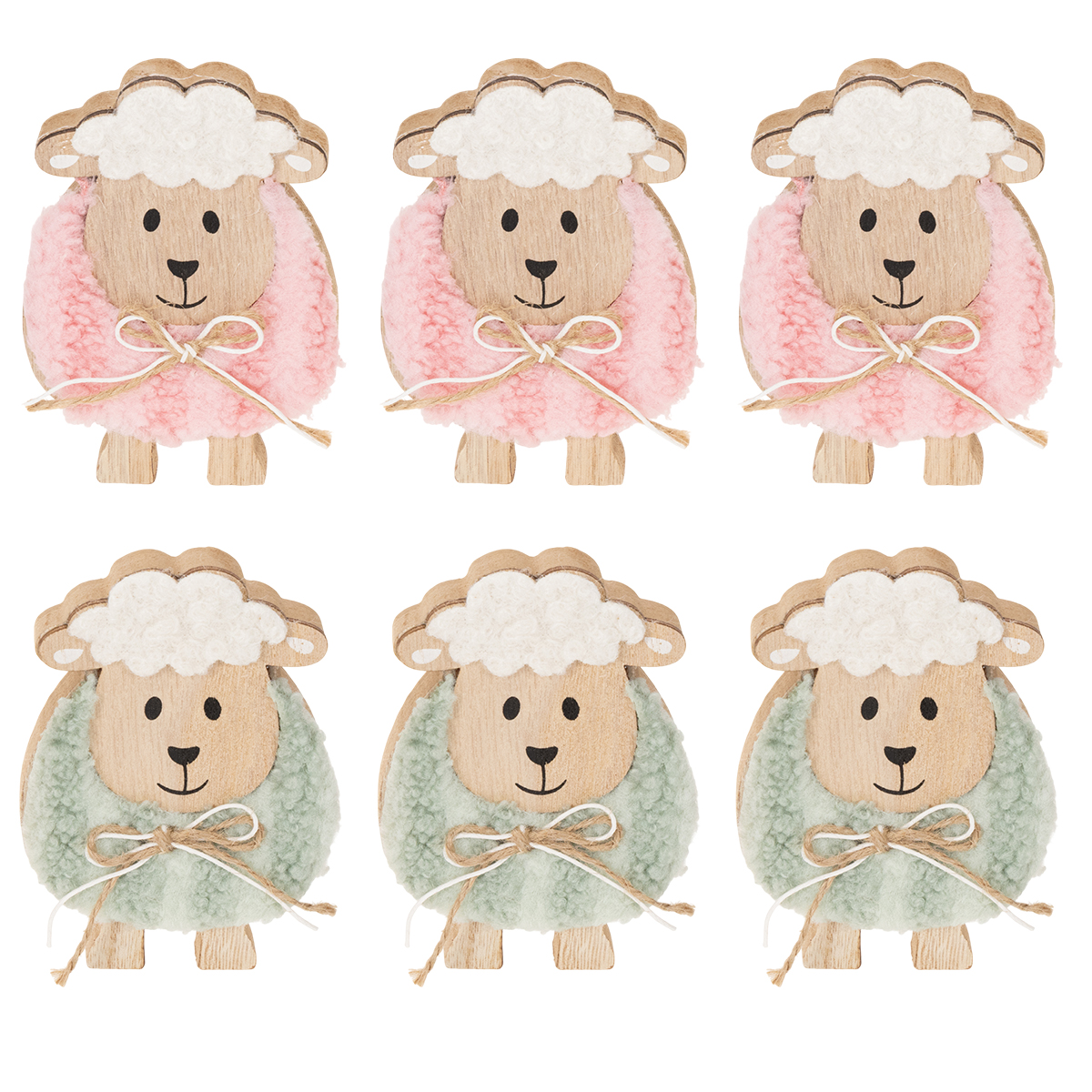 Wooden sheep decoration, cute decorative figure for spring and Easter, table decoration, 11cm, 6 pieces
