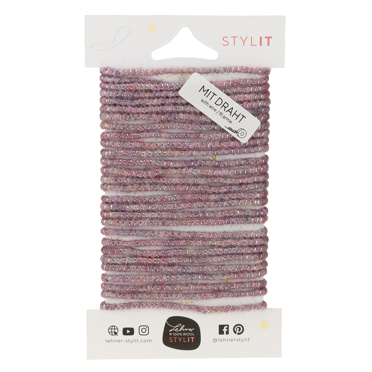 This wool cord is simply delightful. Its high-quality craftsmanship, using 100% natural wool, gives it a charmingly soft appearance, while the incorporated gold lurex thread adds sophisticated accents. Thanks to the embedded wire, you can effortlessly shape the cord into any desired form: bows, curved lines, or delicate decorative details are a breeze. Measuring 5 meters in length and 5 millimeters in width, it provides ample material for a wide variety of DIY projects. From artistic wreaths and stylized gift wrapping to opulent table decorations, this wool cord unleashes your creativity. It pairs particularly well with other pink or gold accessories, such as satin ribbons or rhinestones, harmoniously complementing the glamorous style.