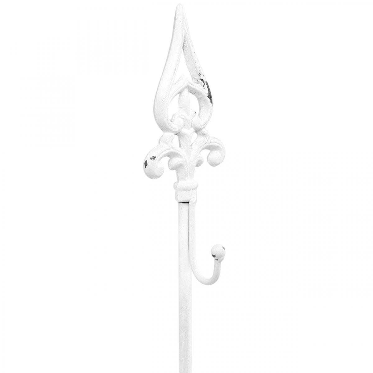 The wreath holder in white brings shabby chic to your decorative wreaths! The cast iron metal decoration has a heavy base so that the stand does not tip over, a side hook for hanging the wreath and a tip in a stylized lily shape. The metal stand was first painted brown, then white. Finally, the white paint on the wreath stand was removed in places, which gives the decoration stand its typical vintage look.